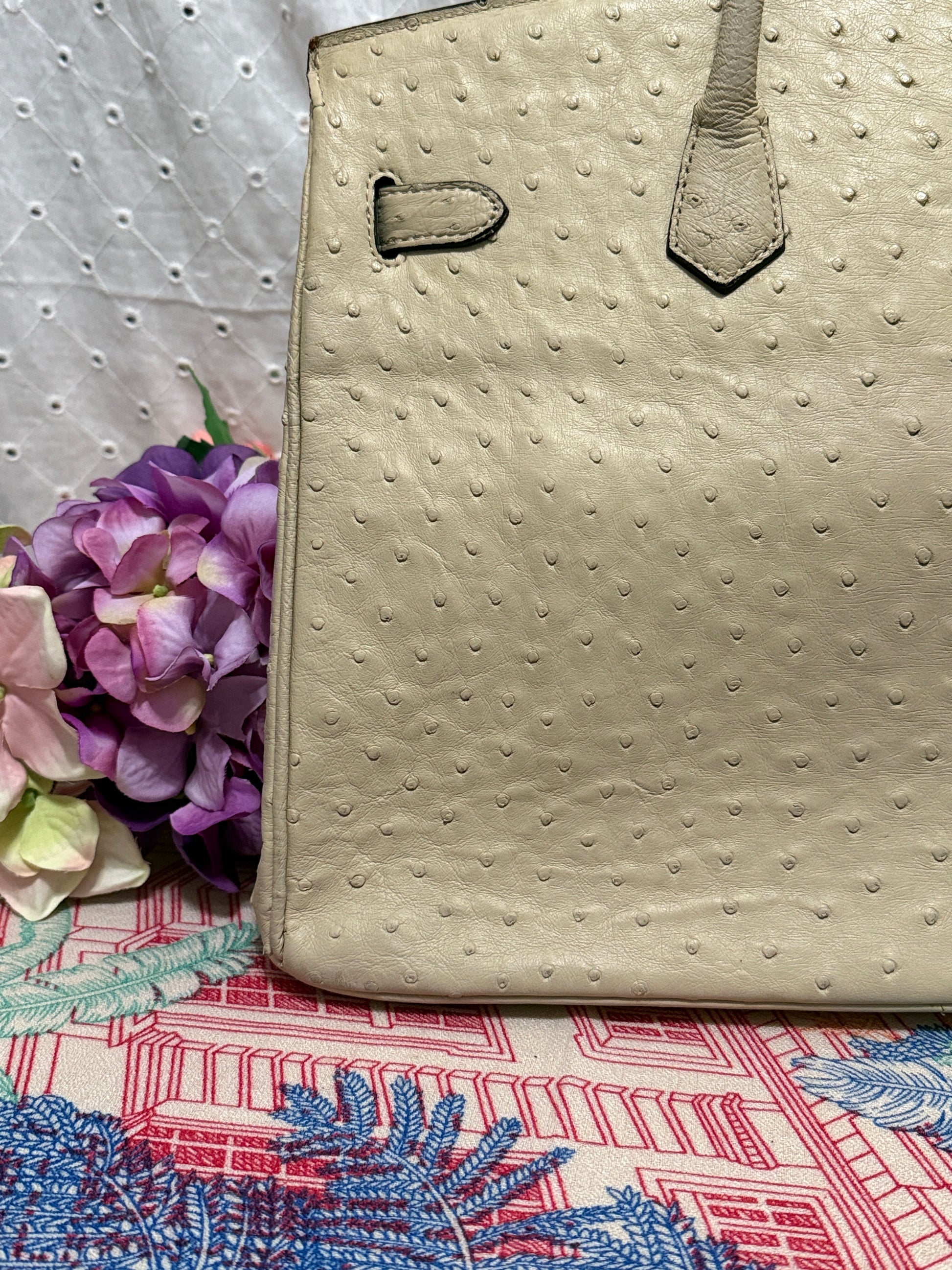 Vintage Italian Ostrich Leather Bag – Ivory White