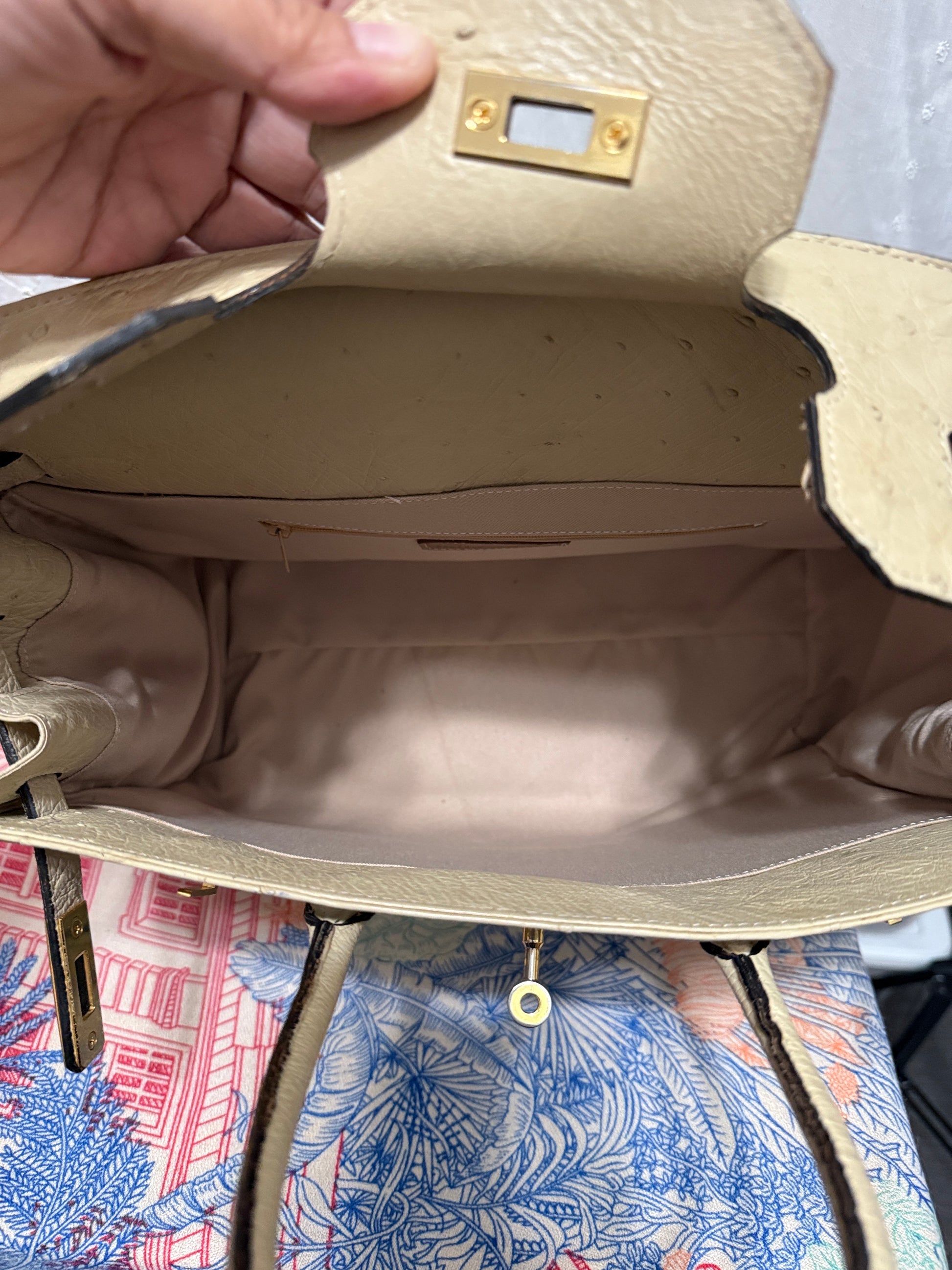One-of-a-kind vintage treasure from Italy. Crafted from genuine ostrich leather in an elegant ivory white tone, this bag carries a timeless charm. Featuring structured handles, gold-tone hardware, and a spacious interior, it’s perfect for both collectors and everyday sophistication. Rare, luxurious, and beautifully aged — a piece that will only grow more graceful with time.
